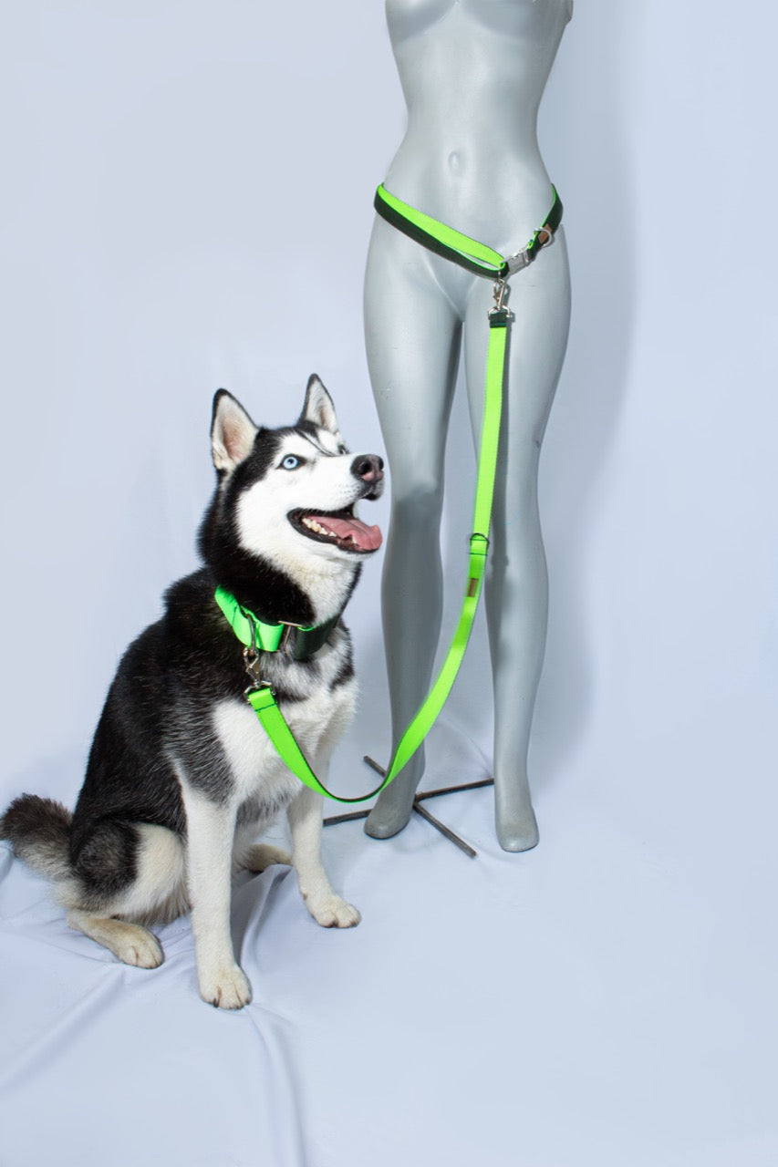 En sus dos argollas puedes adaptar hasta 3 traíllas por cada una, además al ser libres, tu perro puede moverse sin que tengas que voltearte.